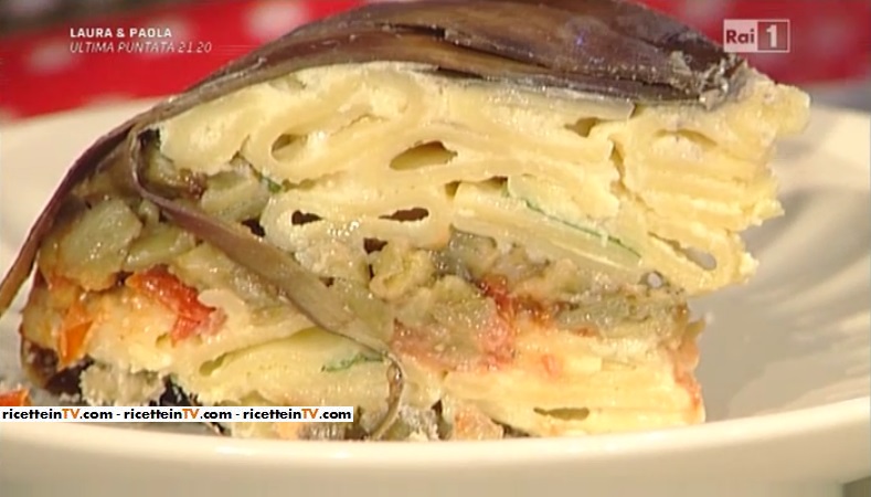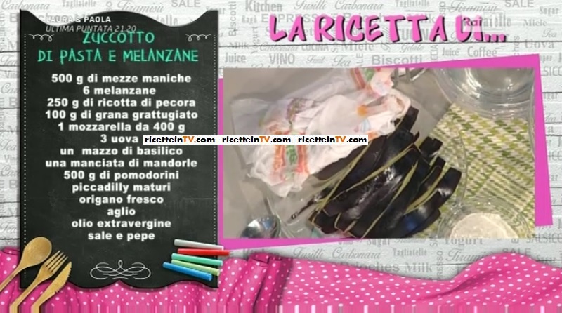 Tritiamo grossolanamente le mandorle con la pelle. Peliamo la melanzana; la tagliamo a tocchetti e la mettiamo a spurgare, in una ciotola, con il sale grosso; lasciamo per qualche minuto, quando avrà spurgato la passiamo sotto l’acqua corrente. La asciughiamo un po’ con un canovaccio. Scaldiamo l’olio in padella, insieme agli spicchi d’aglio ed i pomodorini tagliati a tocchetti. Su una teglietta, mettiamo le melanzane con un filo d’olio, origano secco e qualche foglia di basilico. Inforniamo a 160° per 20 minuti. Foderiamo uno stampo a zuccotto con carta forno bagnata e strizzata e le bucce di melanzana. Lessiamo la pasta, scolandola al dente. A parte, lavoriamo la ricotta con le uova, il formaggio grattugiato, le mandorle tritate ed il basilico tritato grossolanamente. Condiamo la pasta con il composto di ricotta e un po’ di acqua di cottura della pasta. Formiamo uno strato di pasta all’interno dello zuccotto; mettiamo un po’ di pomodori spadellati, melanzane a cubetti, mozzarella a cubettoni e ancora pasta; melanzane, pomodoro e così via fino ad esaurire gli ingredienti. Completiamo con pasta e formaggio grattugiato. Inforniamo a 180° per 40 minuti. Una volta intiepidito, lo sformiamo.