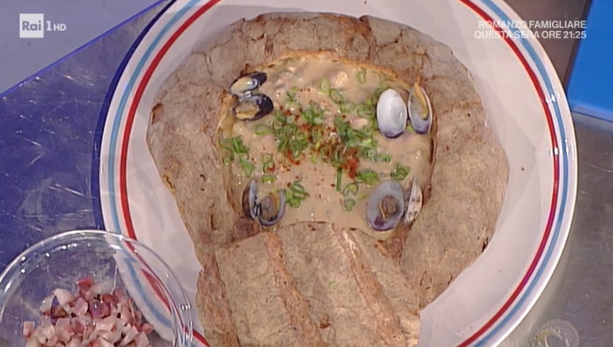 Serviamo con cipollotto fresco affettato, paprika, bacon croccante e dei crostini di pane tostato. Oppure, all’interno di una pagnotta svuotata e tostata in forno.