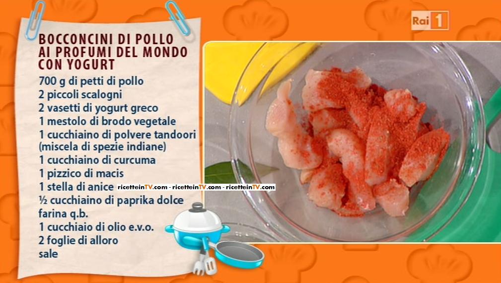 Le ricette de “La prova del cuoco”: bocconcini di pollo al profumo del mondo con yogurt di Sergio Barzetti.