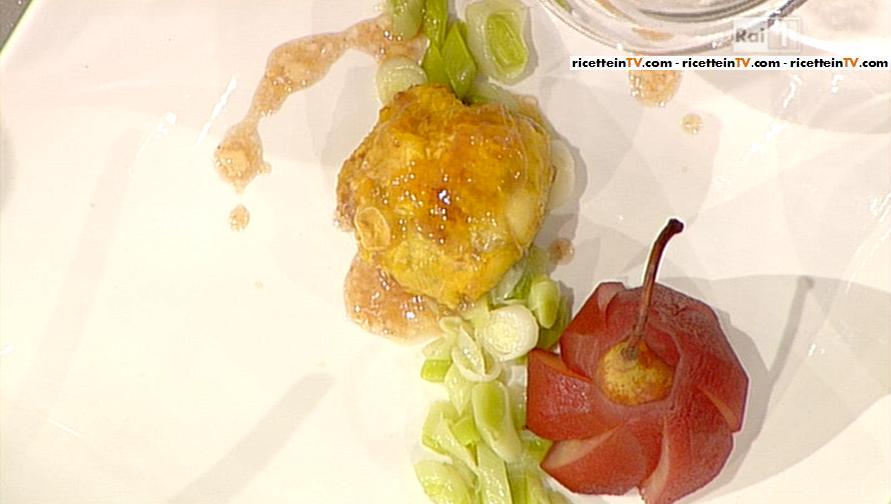 Le ricette de “La prova del cuoco”: coscia di cappone con pera cotta al vino rosso di Andrea Ribaldone.