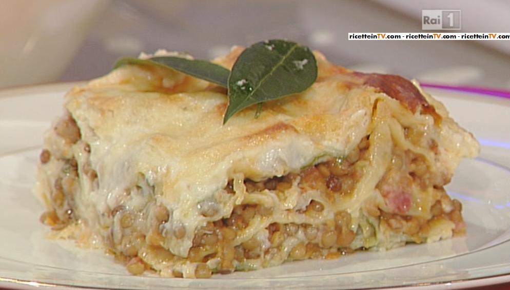 Le ricette de “La prova del cuoco”: le lasagne alle lenticchie cotechino e bietoline.