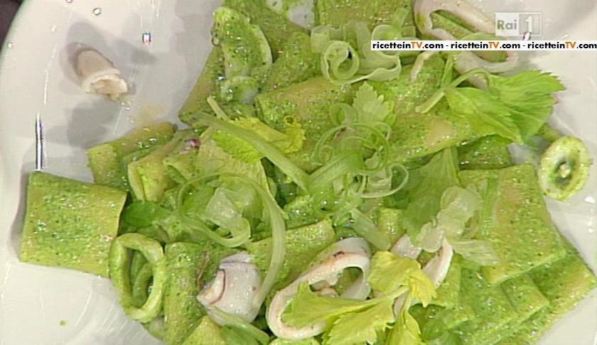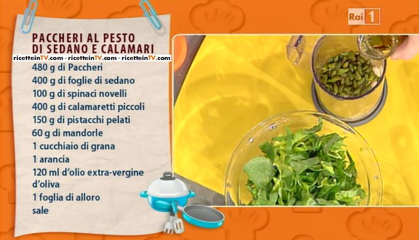 Sergio Barzetti, nella puntata odierna della Prova del cuoco, si è concesso un timido complimento ad Antonella ed una marketta al libro, su cui, a pag 172, troviamo la ricetta dei paccheri al pesto di sedano e calamari.
