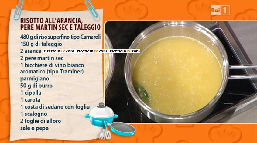 “Vado dal mio maestro“, Sergio Barzetti accoglie Antonella, entusiasta del piatto che il cuoco sta per preparare, si tratta, infatti, di un goloso risotto all’arancia, pere martin sec e taleggio. Troverete la ricetta anche nel libro de La prova del cuoco.