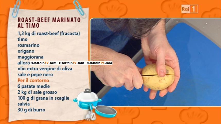 “Un po’ meno giovane“, ma lo è stato anche lui (?), Sergio Barzetti è pronto a servire un sontuoso roast-beef marinato al timo, la cui ricetta potrete ritrovare a pag. 206 del libro de La prova del cuoco.