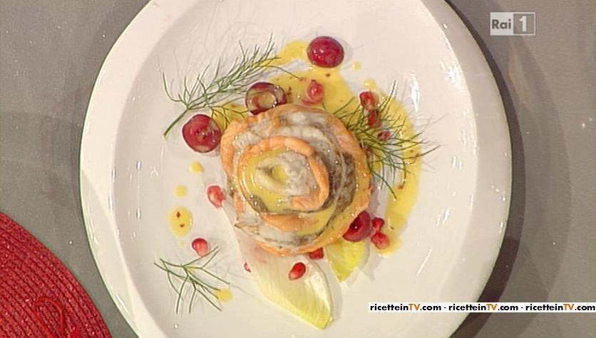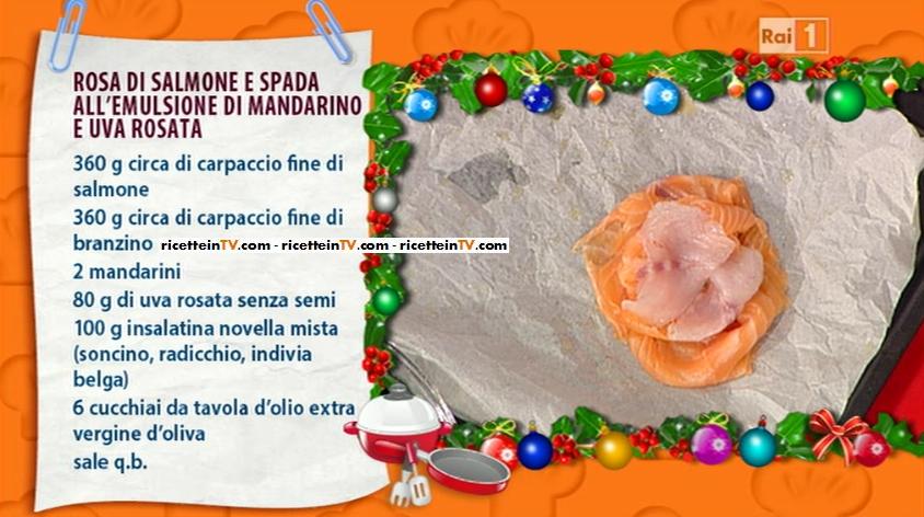 Sergio Barzetti, maestro in cucina nella puntata odierna de La prova del cuoco, ha presentato una delle ricette contenute nel suo ultimo libro (scritto insieme ad Alessandra Spisni e ad Antonella Clerici), Le ricette della Prova del Cuoco, ovvero quella del rosa di salmone e branzino con mandarino e uva rosata. Di seguito gli ingredienti ed il procedimento.