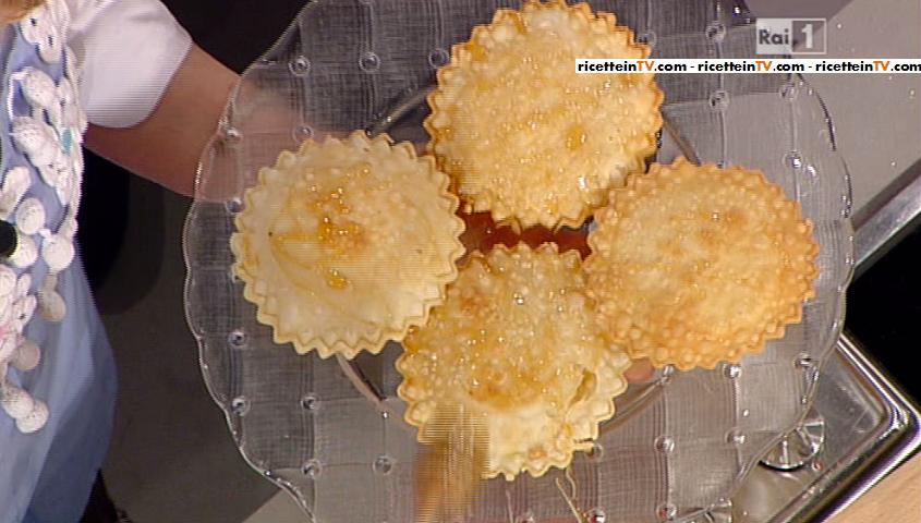 Per la pasta, occorrono farina di grano duro, farina 0, strutto (per 1 Kg di farina metterene 200 gr) ed acqua. Quindi prendiamo un formaggio di pecora primo sale, lo facciamo sciogliere in una padella e lo profumiamo con la scorza di limone. Lasciamo che raffreddi, quindi ricaviamo dei dischetti. Stendiamo la pasta molto sottile, mettiamo al centro il nostro formaggio, quindi pieghiamo la pasta sul dischetto e tagliamo, ottenendo una sorta di raviolone. Le friggiamo in olio di arachidi e condiamo con del miele.