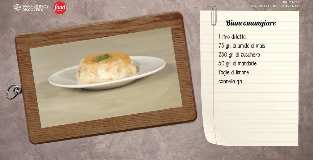 Don Salvatore, cuoco e monaco del monastero di San Martino delle scale, a Monreale (Sicilia), propone un’altra delle antiche ricette tramandate tra le mura del convento, al centro del programma di Food Network “Le ricette del convento“, in onda ogni sabato, alle 18:00, sul canale 33 (in streaming su Discoveryplus.it). Oggi, in particolare, vediamo come preparare il biancomangiare.