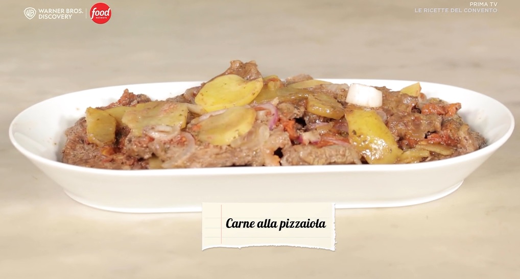 Don Salvatore, cuoco e monaco del monastero di San Martino delle scale, a Monreale (Sicilia), propone un’altra delle antiche ricette tramandate tra le mura del convento, al centro del programma di Food Network “Le ricette del convento“, in onda ogni sabato, alle 18:15, sul canale 33 (in streaming su Discoveryplus.it). Oggi, in particolare, vediamo come preparare la carne alla pizzaiola.