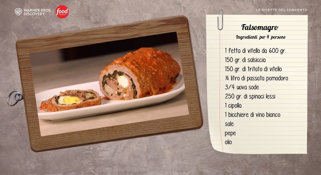 falsomagroDon Salvatore, cuoco e monaco del monastero  di San Martino delle scale, a Monreale (Sicilia), propone un’altra delle antiche ricette tramandate tra le mura del convento, al centro del programma di Food NetworkLe ricette del convento“, in onda ogni sabato, alle 17:00, sul canale 33 (in streaming su Discoveryplus.it). Oggi, in particolare, vediamo come preparare il falsomagro .