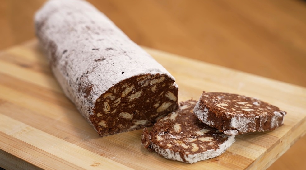 Nelle nuove puntate della nuova serie di Food Network Le ricette di casa Persia, dedicata alla cucina ‘di casa‘ della nota attrice comica Valentina Persia, in onda in prima serata sul canale 33, abbiamo assistito alla preparazione di un salame di cioccolato. Di seguito gli ingredienti necessari ed il procedimento.