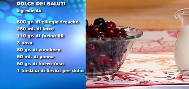 La ricetta del dolce dei saluti (con ciliegie), proposta da Samya a Mattino Cinque il 30 maggio 2014.
