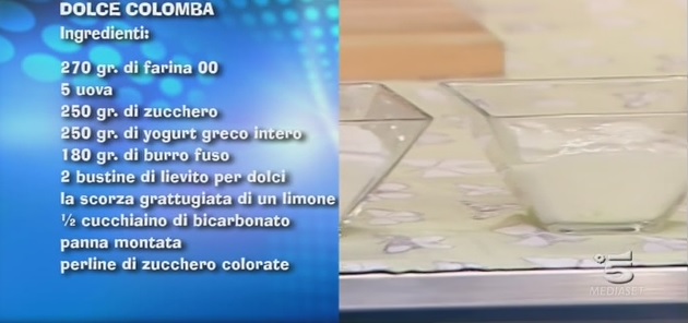 La ricetta della dolce colomba, proposta da Samya a Mattino Cinque il 18 aprile 2014.