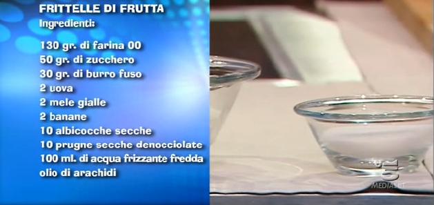 La ricetta delle frittelle di frutta, proposta da Samya a Mattino Cinque il 16 aprile 2014.