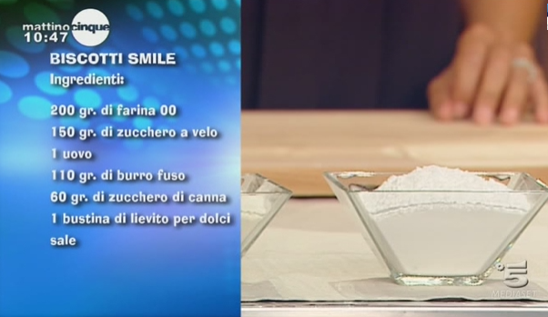 La ricetta dei biscotti smile proposta da Samya a Mattino Cinque il 25 ottobre 2013.