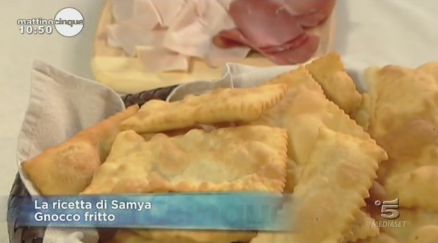 La ricetta dello gnocco fritto proposta da Samya a Mattino Cinque il 21 ottobre 2013.