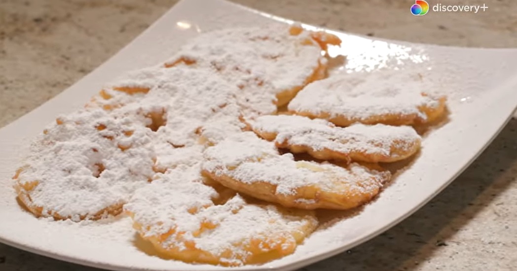 frittelle di meleChiara Maci, affiancata da un/a sapiente Cesarina/o, custode delle ricette della cucina regionale grazie alla formula dell’home restaurant, ripercorre la Penisola in cerca dei piatti più golosi e genuini. In una puntata, in particolare, Chiara ha assistito alla preparazione delle frittelle di mele.