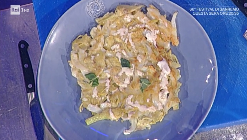 seppie e carciofi di Gianfranco PascucciAncora pesce, con Gianfranco Pascucci, che prepara un piatto a base di seppie. Un classico con il tocco dello chef, ma da una ricetta dell’amico Alberto. Ecco le seppie e carciofi di Alberto.