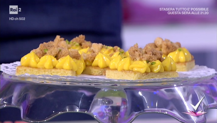 Il tutor pasticciere Gian Luca Forino, protagonista dello spazio dedicato alla cucina, all’interno del programma condotto da Caterina Balivo su Rai2, Detto Fatto, ha proposto le madeleine all’arancia con crema e crumble. Di seguito ingredienti e procedimento.