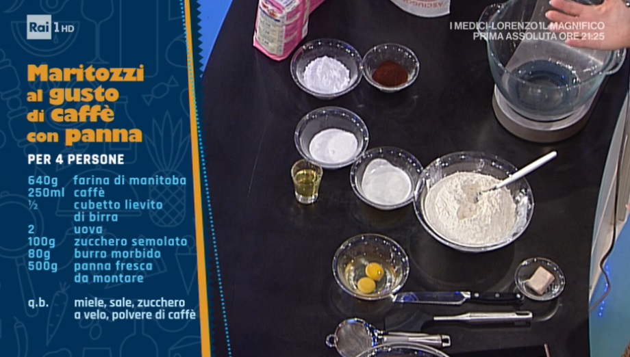 - 640 g farina manitoba, 250 ml caffè, mezzo cubetto di lievito di birra, 2 uova, 100 g zucchero semolato, 80 g burro morbido, 500 g panna fresca da montare, miele, sale, zucchero a velo, polvere di caffè