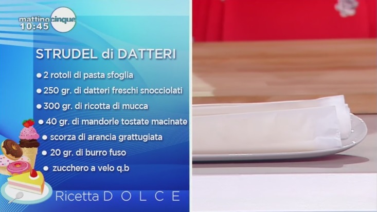 La ricetta dello strudel di datteri proposta da Samya a Mattino Cinque il 24 aprile 2015.
