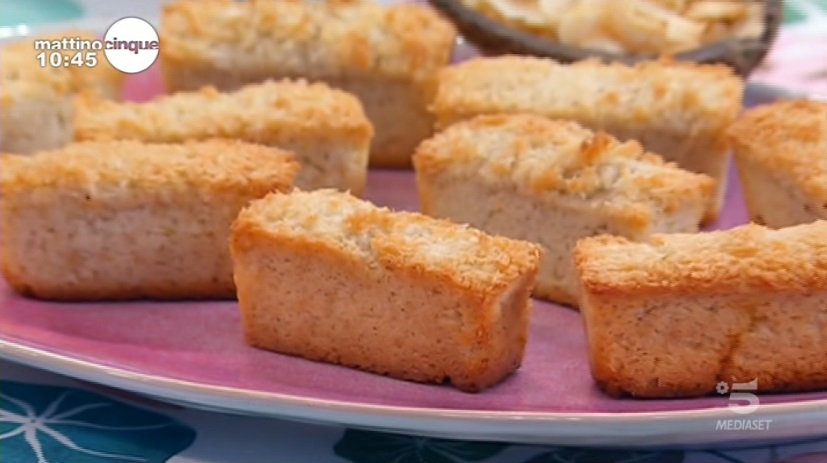 - 400 g farina di cocco, 170 g zucchero a velo, 190 g burro fuso, 80 g farina 00, 1 bustina di lievito per dolci, 7 albumi, 1 bustina di vanillina, mezzo cucchiaino di cannella in polvere, scorza grattugiata di 1 lime