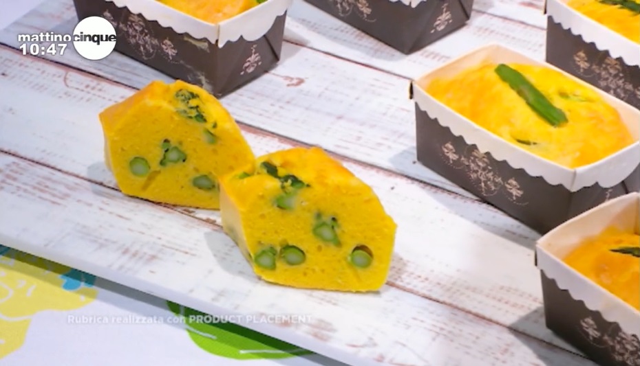 - 10 asparagi, 4 uova, 160 g farina 00, 80 g parmigiano a scaglie, 80 ml olio di semi di girasole, 1 bustina di lievito per dolci, sale