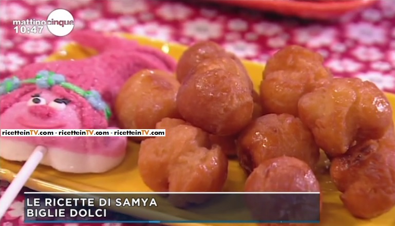Formiamo delle biglie, grandi come delle noci, e le immergiamo in olio caldo (170°). Le giriamo spesso. Devono essere ben dorate su tutti i lati. Le scoliamo su carta assorbente e le tuffiamo, ancora calde, nello sciroppo. Mescoliamo un po’, in modo che si impregnino per bene. Serviamo.
