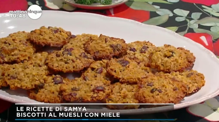 - 200 g muesli, 1 uovo, 120 g burro, 50 g zucchero, 30 g farina manitoba, 30 g miele, scorza grattugiata di mezza arancia, mezza bustina di lievito per dolci