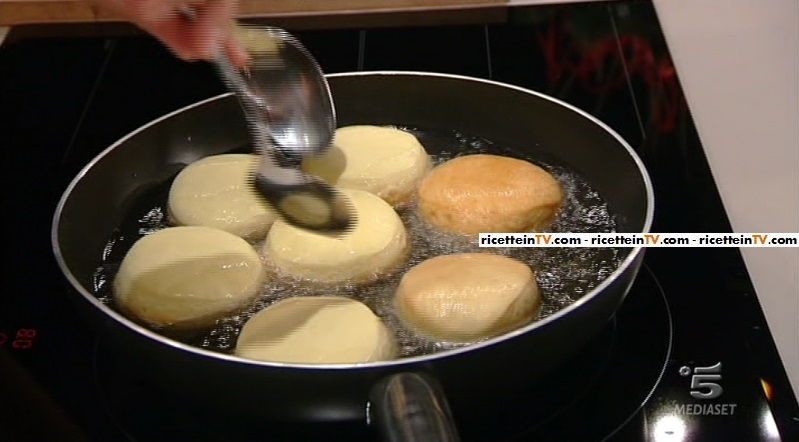 Raddoppiato il volume dei dischi, li tuffiamo in olio bollente (non più di 170°). Quando sono dorati su un lato, li giriamo. Quindi, li facciamo intiepidire su della carta assorbente e, se vogliamo, li passiamo nello zucchero semolato o li farciamo a piacere, con marmellata, miele o creme varie.