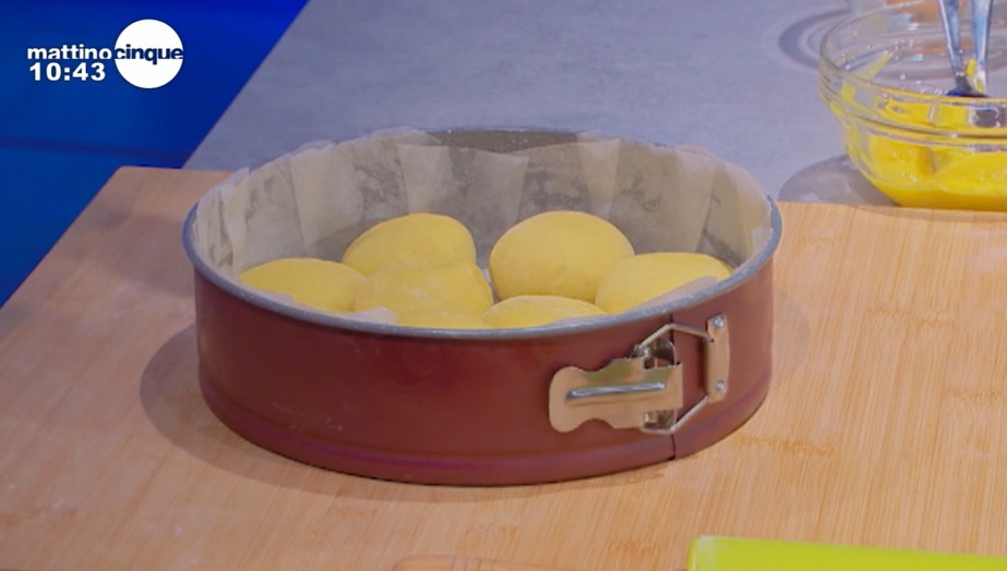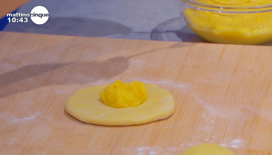 Ricaviamo delle palline di circa 60 g. Stendiamo ogni panetto con il mattarello, in modo da ottenere dei dischetti. Su ognuno, mettiamo un cucchiaino di crema pasticcera. Sigilliamo all’interno dell’impasto la crema, sigillando bene la chiusura. Posizioniamo le palline all’interno di una tortiera, distanziandole leggermente. Copriamo e lasciamo lievitare ancora 30 minuti. Spennelliamo con il tuorlo sbattuto e cuociamo in forno caldo e statico a 170° per 45 minuti.