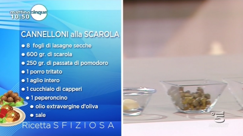 La ricetta dei cannelloni alla scarola, proposta da Samya a Mattino Cinque il 20 gennaio 2014.