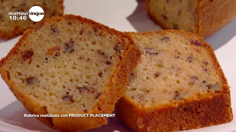 - 250 g ricotta, 3 uova, 200 g zucchero di canna, 150 g farina 00, 100 g fecola di patate, 150 g burro fuso, 60 g uvetta, 40 g noci, 1 bustina di lievito per dolci