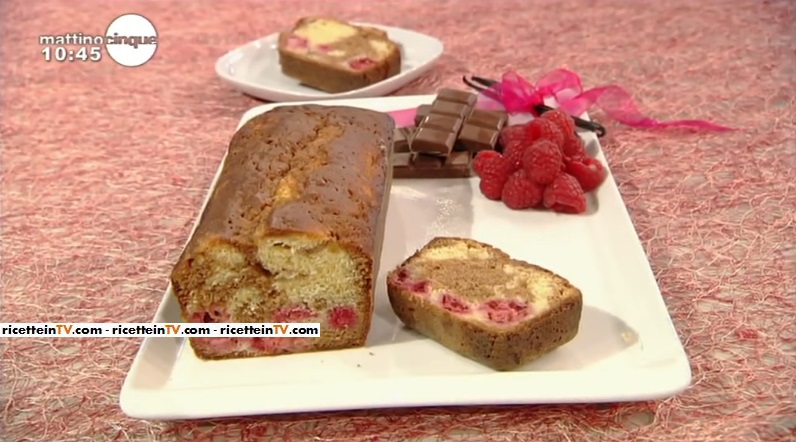 In una ciotola, mettiamo il burro fuso con lo zucchero ed i semi del baccello di vaniglia; lavoriamo con una frusta elettrica, quindi aggiungiamo le uova intere e continuiamo a montare. Amalgamati gli ingredienti, uniamo la miscela di farina, lievito ed un pizzico di sale. Frustiamo ancora fino ad ottenere un composto omogeneo. Dividiamo l’impasto in due ciotole; in una mettiamo i lamponi, nell’altra il cioccolato fuso. In una teglia da plumcake, ibmurrata ed infarinata, formiamo un primo strato di composto al cioccolato; quindi versiamo tutto il composto con i lamponi e completiamo con il restante impasto al cioccolato. Inforniamo a 190° per 30-35 minuti.