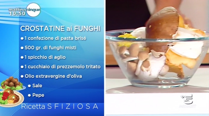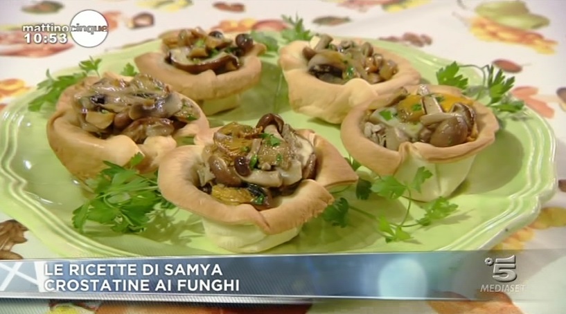 La ricetta delle crostatine ai funghi, proposta da Samya a Mattino Cinque il 18 novembre 2014.