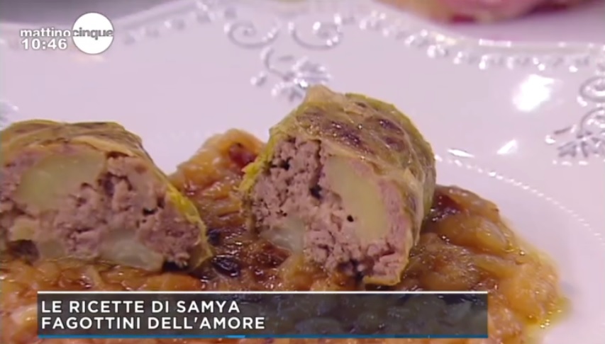 In padella, facciamo sciogliere il burro con un filo d’olio. Mettiamo a rosolare la cipolla tritata finemente. Mettiamo a cuocere i fagottini. Bagniamo con il brodo, copriamo e lasciamo cuocere per 1 ora.