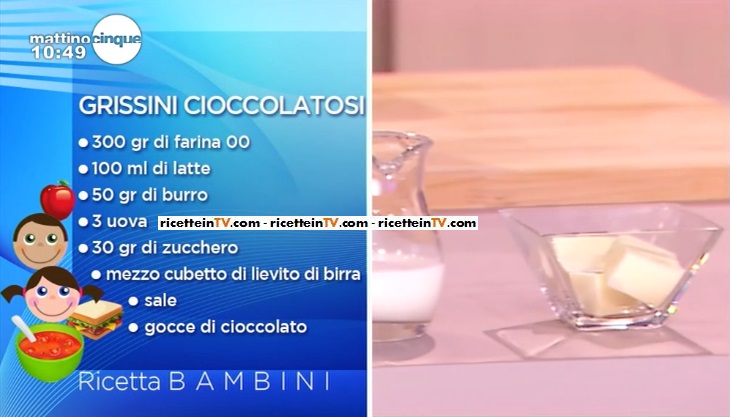 - 300 g farina 00, 100 ml latte, 50 g burro, 3 uova, 30 g zucchero, mezzo cubetto di lievito di birra, sale, gocce di cioccolato