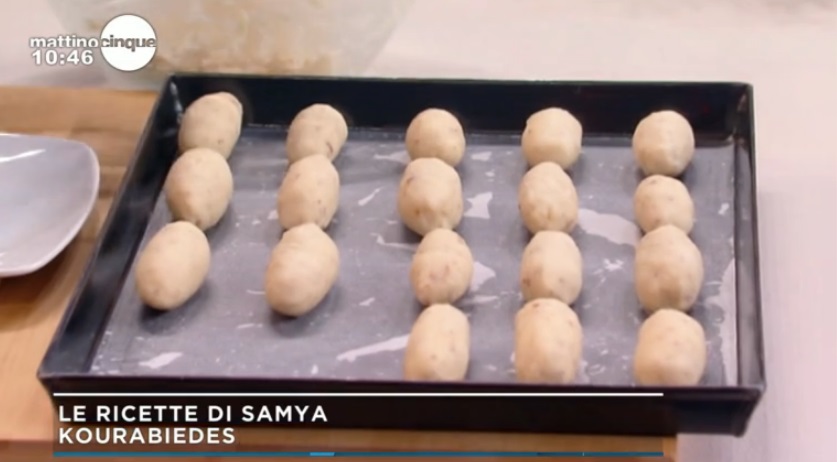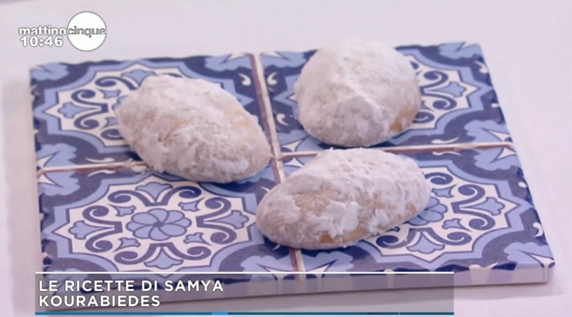 Samya Abbary, l’attrice marocchina che propone, all’interno di MattinoCinque, le sue ricette, quest’oggi ha preparato un dolcetto tipico della Grecia, a base di mandorle e burro. Ecco la ricetta dei kourabiedes.