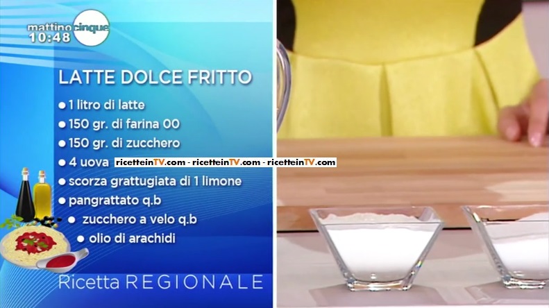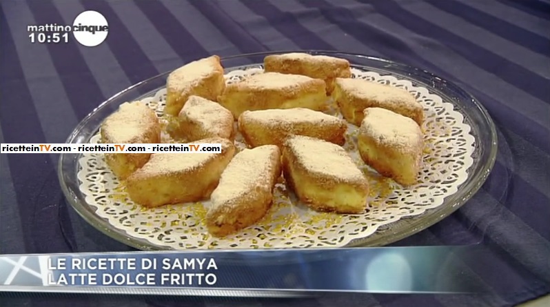 La ricetta del latte dolce fritto proposta da Samya a Mattino Cinque l’11 maggio 2015.
