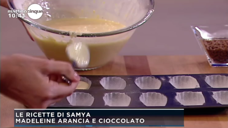 Samya Abbary, l’attrice marocchina che propone, all’interno di MattinoCinque, le sue ricette, quest’oggi ha preparato un dolcetto goloso, perfetto per la colazione o la merenda, con un inconfondibile profumo… di arancia! Ecco la ricetta delle madeleine arancia e cioccolata.