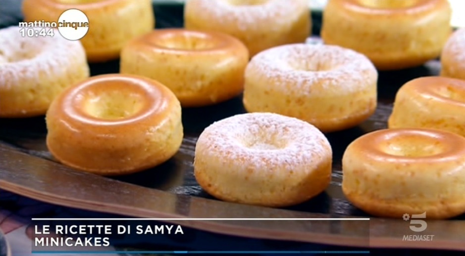 Trasferiamo il composto ottenuto all’interno degli stampini monoporzione in silicone a ciambellina, lasciando libero 1 cm dal bordo. Inforniamo a 180° per 20 minuti. Da fredde, le finiamo con dello zucchero a velo.
