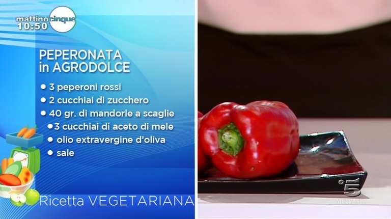 La ricetta della peperonata in agrodolce, proposta da Samya a Mattino Cinque il 29 ottobre 2014.