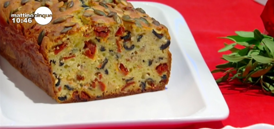 plumcake salato con acciughe e pomodori secchiSamya Abbary, l’attrice marocchina che propone, all’interno di MattinoCinque, le sue ricette, quest’oggi ha proposto la ricetta di una torta salata ricchissima, da servire in un ottimo banchetto o buffet. Ecco il plumcake salato con acciughe e pomodori secchi. Ingredienti e procedimento.