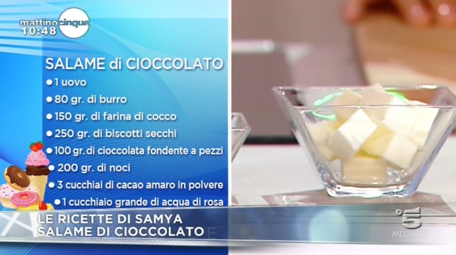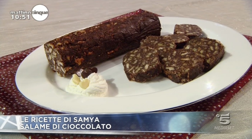La ricetta del salame di cioccolato, proposta da Samya a Mattino Cinque il 5 dicembre 2014.
