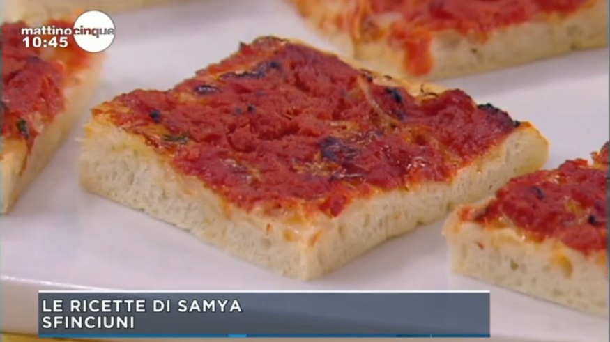 sfinciuniSamya Abbary, l’attrice marocchina che propone, all’interno di MattinoCinque, le sue ricette, quest’oggi ha preparato un lievitato ricco e goloso, tipico della tradizione siciliana. Ecco la ricetta dello sfinciuni.