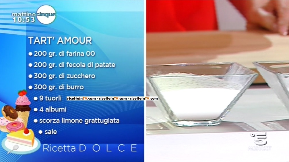 La ricetta della tart’ amour, proposta da Samya a Mattino Cinque il 13 febbraio 2014.