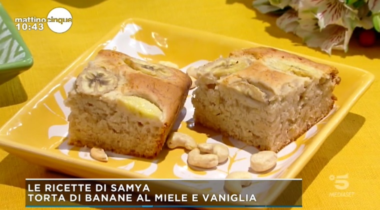 In una ciotola, mettiamo il burro morbido a tocchetti insieme allo zucchero. Lavoriamo con le fruste elettriche, quindi uniamo il miele, la crema di banane e lavoriamo ancora con la frusta. Aggiungiamo il latte e mescoliamo. Infine, incorporiamo poco alla volta la farina miscelata al lievito per dolci. Ottenuto un impasto omogeneo, aggiungiamo la vaniglia e gli anacardi tritati. Trasferiamo l’impasto all’interno di una pirofila foderata con carta forno e disponiamo sopra le fettine di banana. Cuociamo in forno caldo e statico a 180° per 40 minuti.