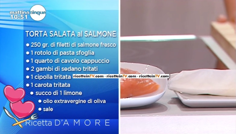 torta salata al salmoneSamya Abbary, l’attrice marocchina che propone, all’interno di MattinoCinque, le sue ricette, quest’oggi ha preparato un secondo piatto romantico, le torta salata al salmone.
