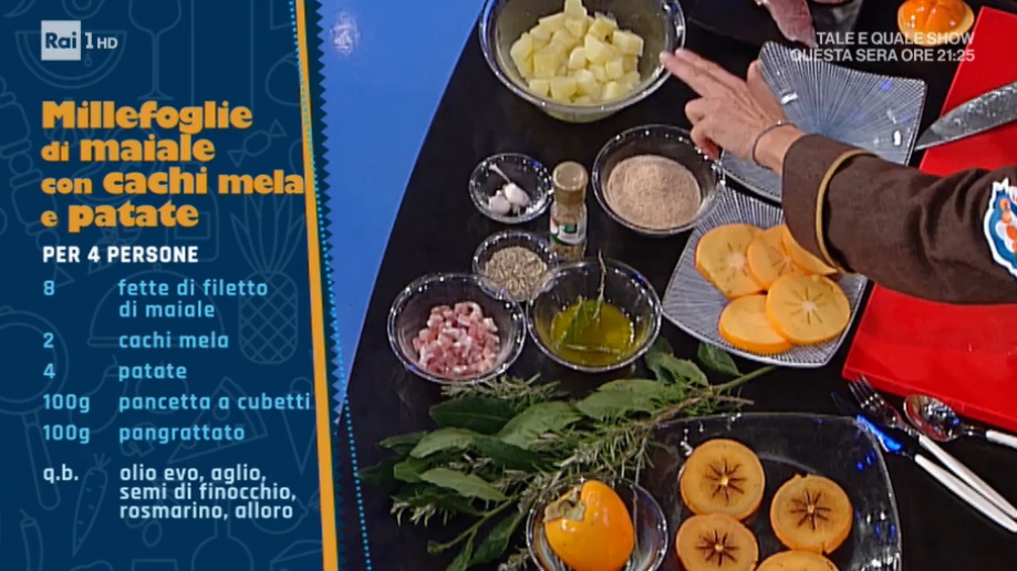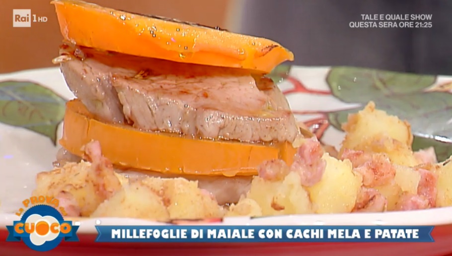 I cachi, golosissimo frutto di stagione, sono l’ingrediente di oggi. Anna Maria Palma prepara un piatto salato impreziosito, appunto, dai cachi. Ecco la millefoglie di maiale con cachi mela e patate.