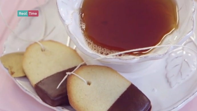 Frullare farina, zucchero, burro, vanillina e un pizzico di sale. Aggiungere l’uovo e frullare ancora. Stendere l’impasto tra due fogli di carta da forno. Ritagliare i biscotti a forma di bustine da the. Fare anche il buchino in alto, con lo stecchino. Cuocere a 180 gradi in forno per 15 minuti. Fare raffreddare i biscotti e glassarli a metà con il cioccolato fuso. Mettere i biscotti sulla teglia con la carta da forno per far rassodare il cioccolato. Completare le “bustine” con il tipico cordino da tè.