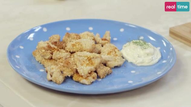 Lasciare riposare i filetti di sogliola nel latte. Intanto, preparare la panatura frullando le mandorle con la farina e il pangrattato. Per la salsa, invece, frullare la maionese con l’aneto, l’aglio, il timo, qualche ago di rosmarino e un pizzico di sale. Sgocciolare quindi i filetti di sogliola, tagliarli a straccetti, impanarli e friggerli. Aggiustare di sale e cospargere di paprika. Servire i nuggets di sogliola con la maionese all’aglio.